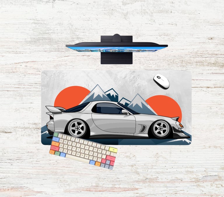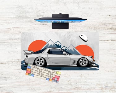 Tu trouves pas de tapis de bureau qui te convienne ? On le crée de toute pièce pour toi pour t'assurer les meilleures parties de sim car et sim racing.